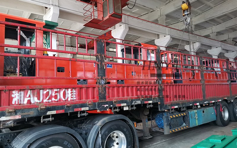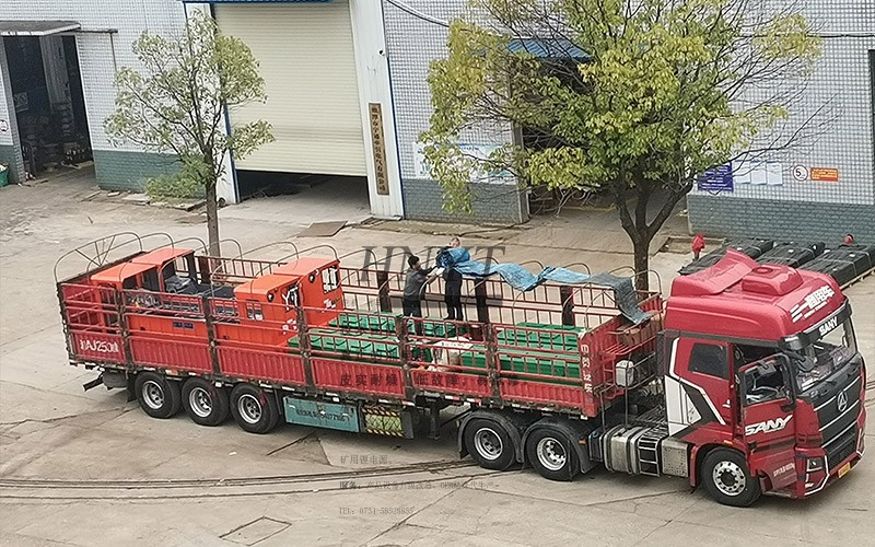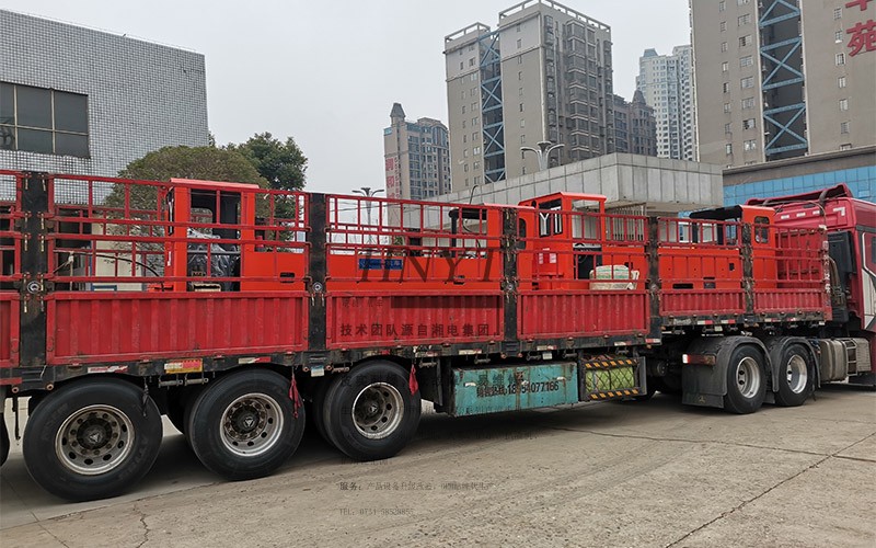 煤礦客戶采購了4套CTL8噸雙司機(jī)室湘潭電機(jī)車,裝滿了2輛大卡車。