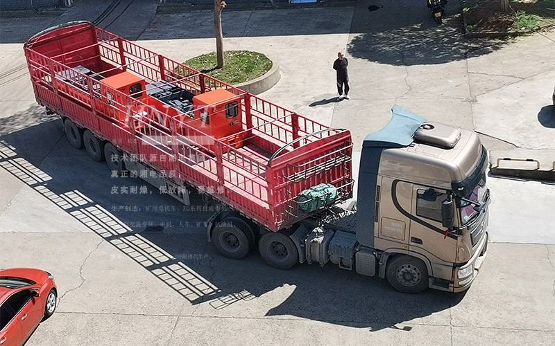 河南客戶采購的8噸礦用湘潭電機(jī)車裝車發(fā)貨。